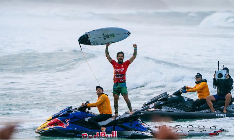 “Primeiro, só quero agradecer a Deus por me trazer de volta aqui. Tirei o ano [o brasileiro se afastou das competições em 2024 para cuidar da saúde mental] para cuidar de mim, da minha família, assim como [Julian Wilson] fez, mas voltei um pouco antes dele. Foi definitivamente difícil voltar e seguir em frente com todos os surfistas, todos tão em sintonia, tão prontos para qualquer coisa. Eu pensei: ‘Cara, preciso voltar de novo, sabe, e é muito bom estar de volta’”, afirmou o brasileiro, que tem no currículo no Circuito Mundial.