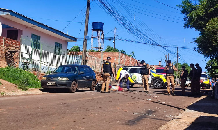 A vítima estava em uma motocicleta na Rua Padre Paulo Englert, quando foi atingida pelos tiros.