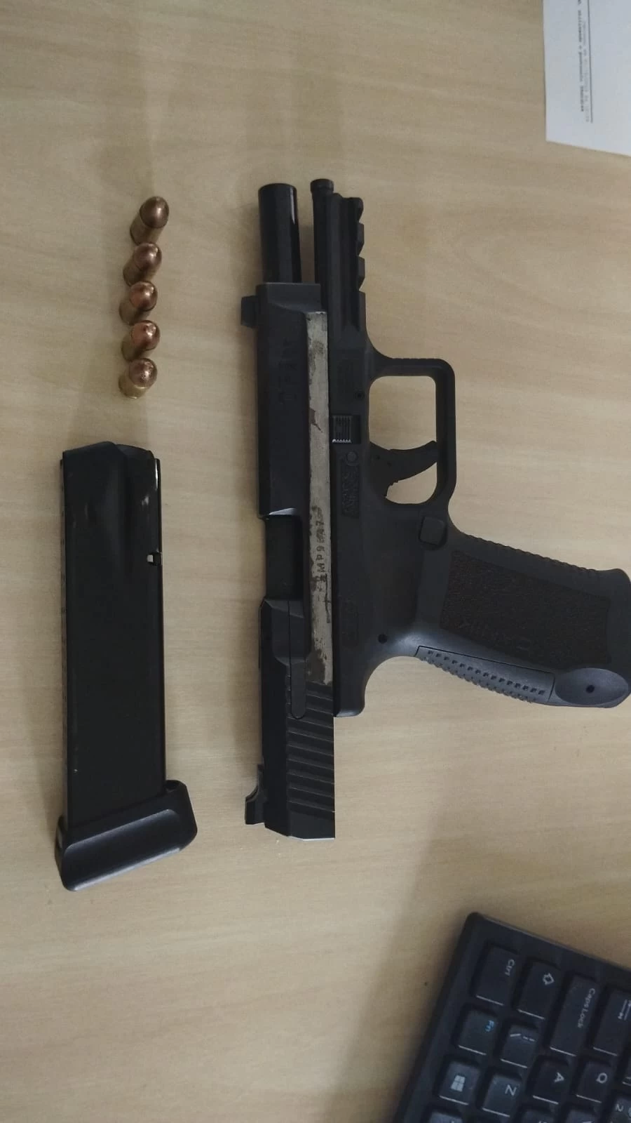 Um dos homens se recusou a acatar a ordem de abordagem, o que levou à detenção e algemação de ambos para garantir a segurança da equipe policial. Durante a busca pessoal, nada de ilícito foi encontrado, porém, no trator Ford, foi localizada uma pistola Canik 9mm com numeração suprimida, carregada com cinco munições intactas. Um dos abordados assumiu ser o proprietário da arma.
